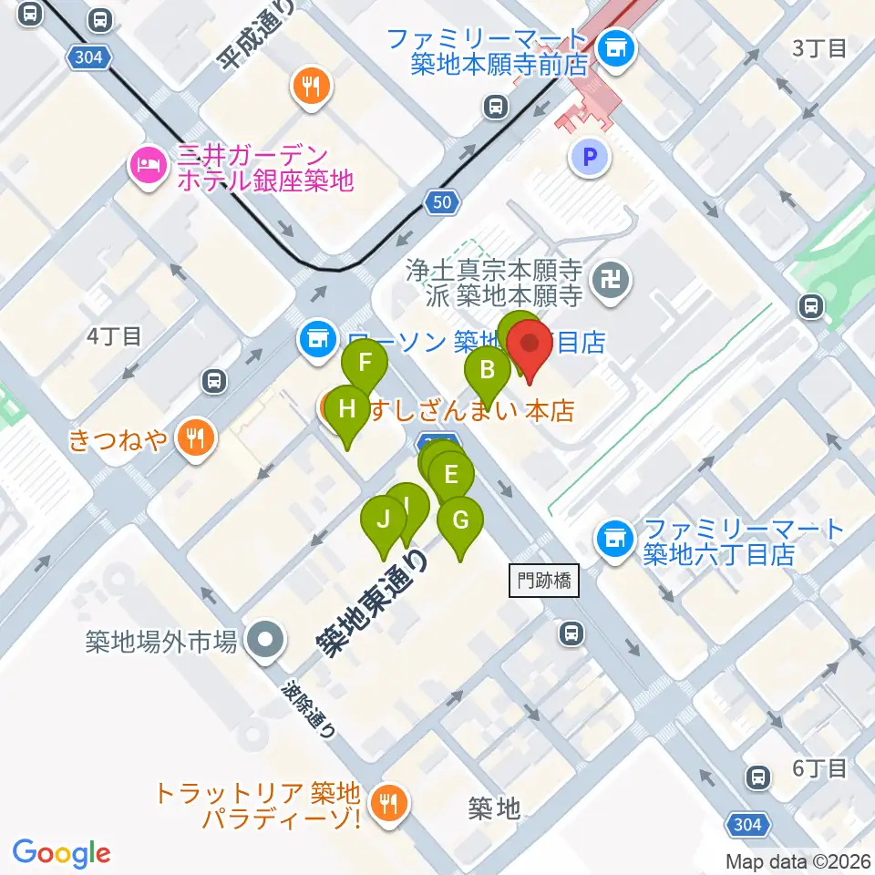 築地本願寺ブディストホール周辺のカフェ一覧地図