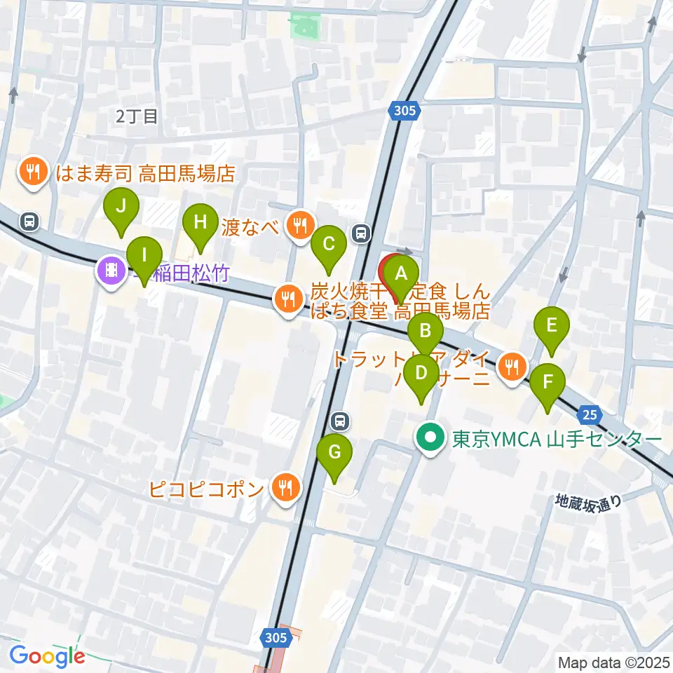 高田馬場新堀ギター音楽院周辺のカフェ一覧地図
