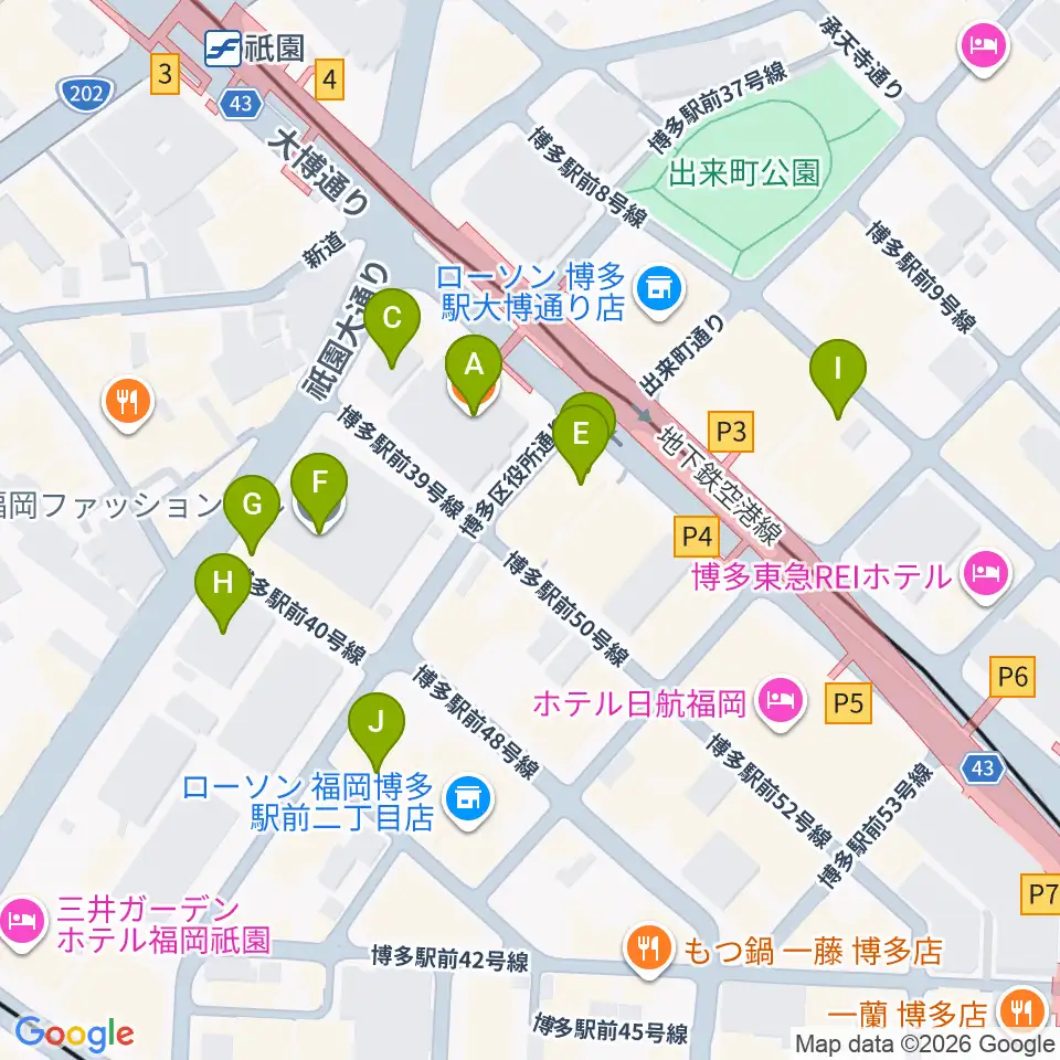 ボーカルスクールVOAT 福岡校周辺のカフェ一覧地図