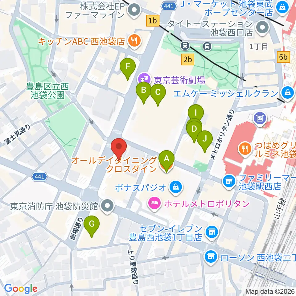 シャイニングボーカル教室 池袋本校周辺のカフェ一覧地図