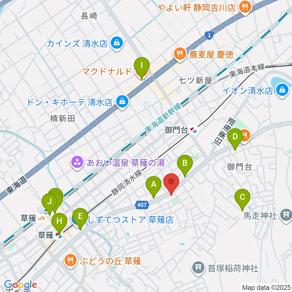 もちづき楽器 静岡草薙店周辺のカフェ一覧地図