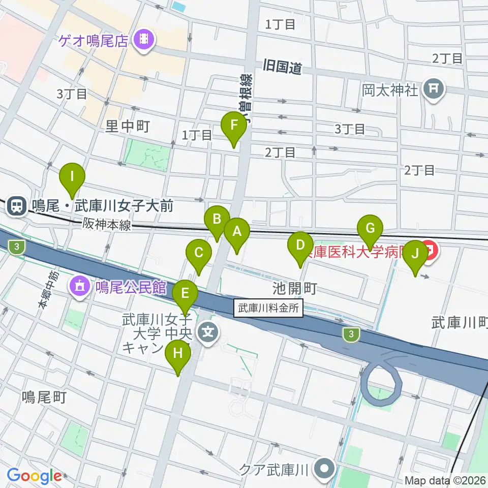 森岡楽器 西宮本店周辺のカフェ一覧地図