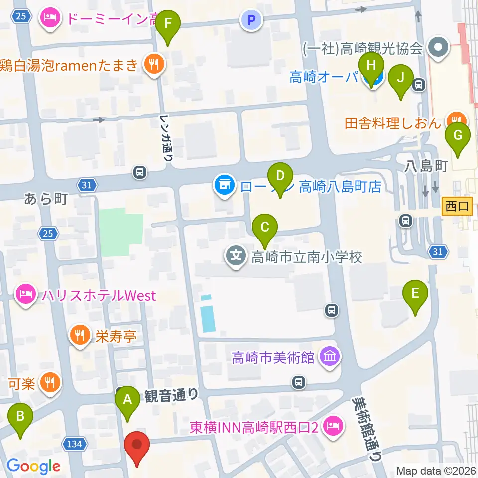 ダストボウル高崎店周辺のカフェ一覧地図