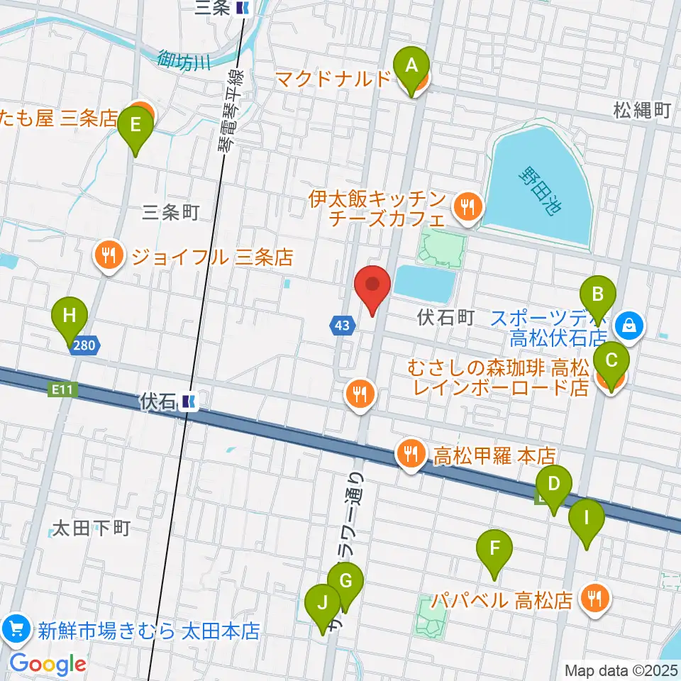 たかまつ楽器周辺のカフェ一覧地図