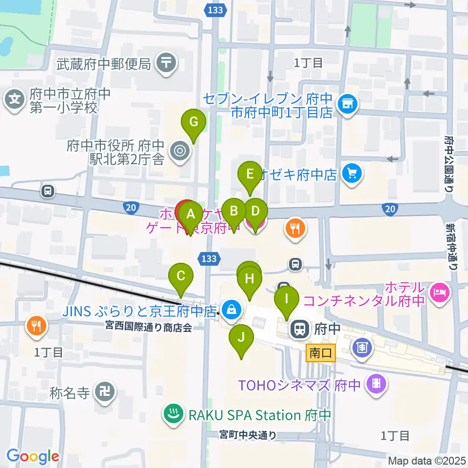 宮地楽器 府中センター周辺のカフェ一覧地図