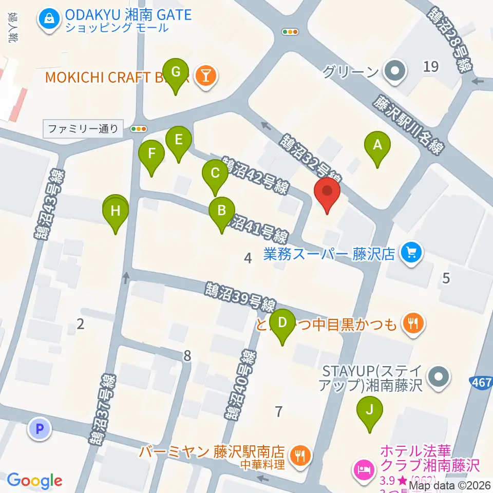 湘南音楽院藤沢周辺のカフェ一覧地図