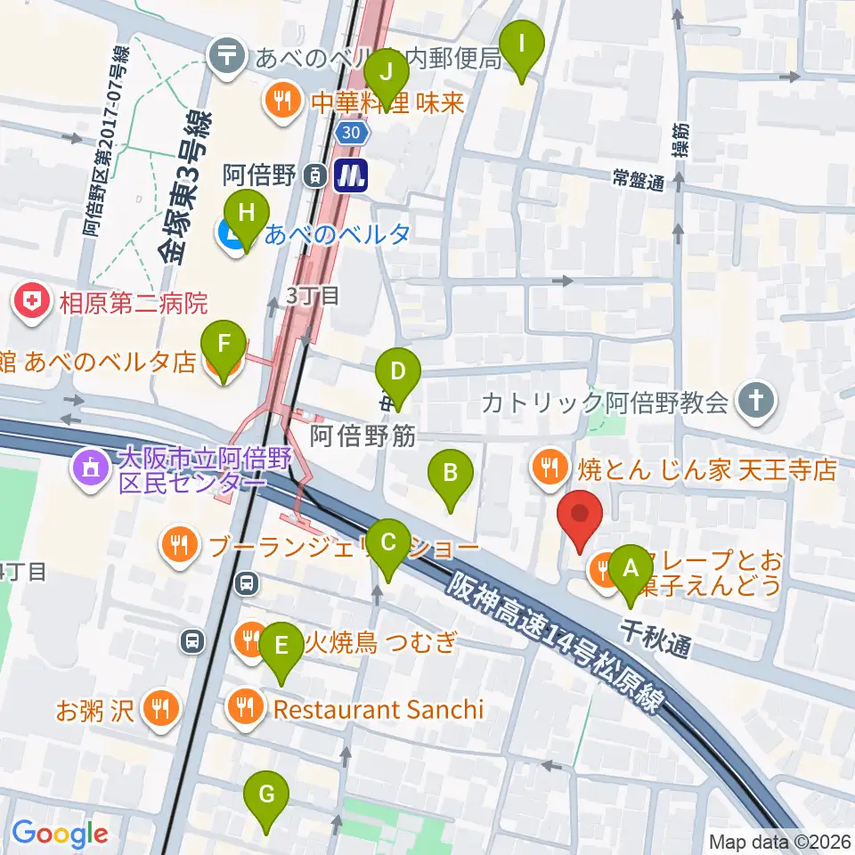阿倍野ドレミ音楽教室周辺のカフェ一覧地図