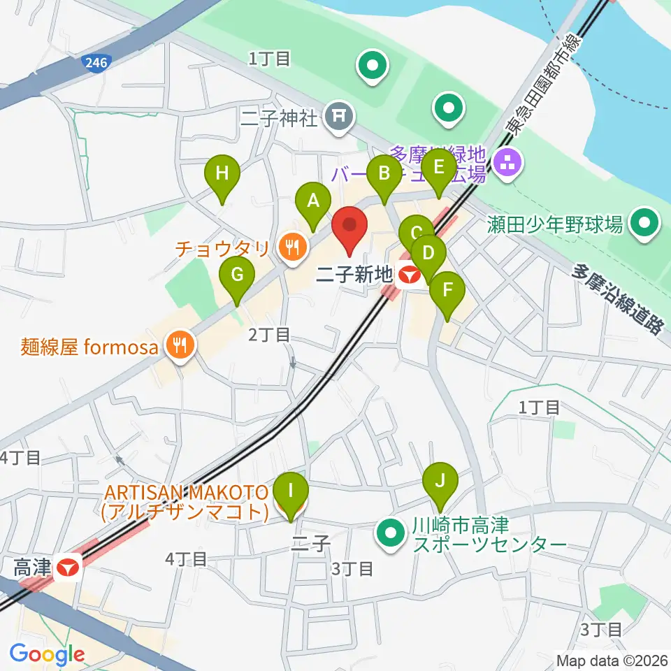 Iorana Music 二子新地周辺のカフェ一覧地図
