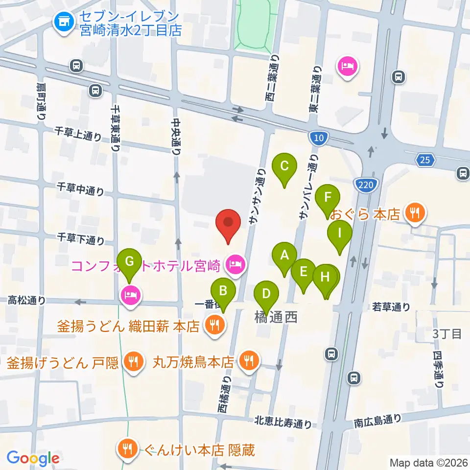 宮崎FLOOR周辺のカフェ一覧地図
