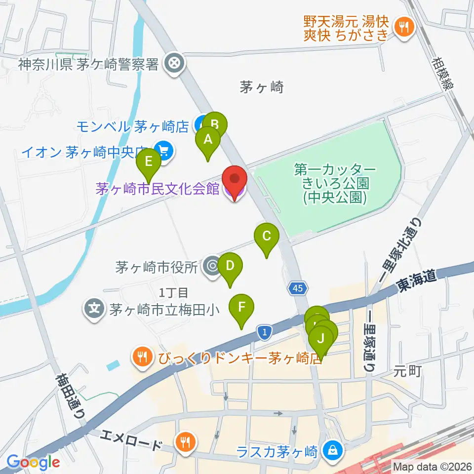 茅ヶ崎市民文化会館周辺のカフェ一覧地図