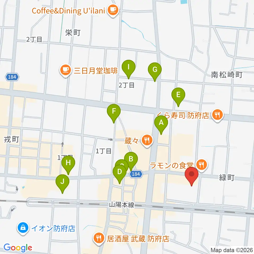 グランドミック タマシゲ楽器 緑町センター周辺のカフェ一覧地図