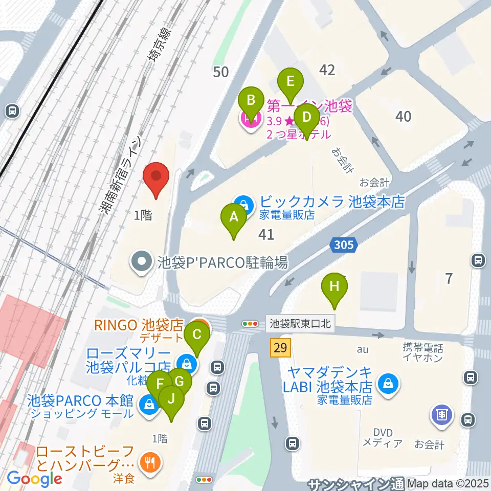 イシバシ楽器 池袋店周辺のカフェ一覧地図