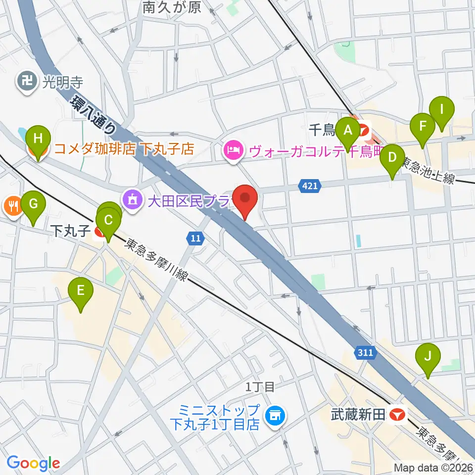 かねこ琴三絃楽器店周辺のカフェ一覧地図