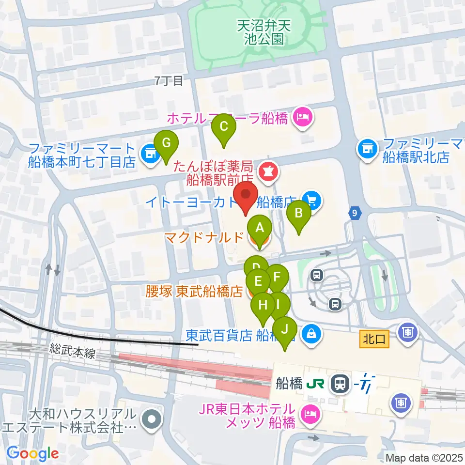 伊藤楽器 ヤマハ船橋センター周辺のカフェ一覧地図