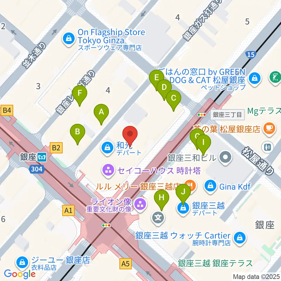 山野楽器 銀座本店周辺のカフェ一覧地図