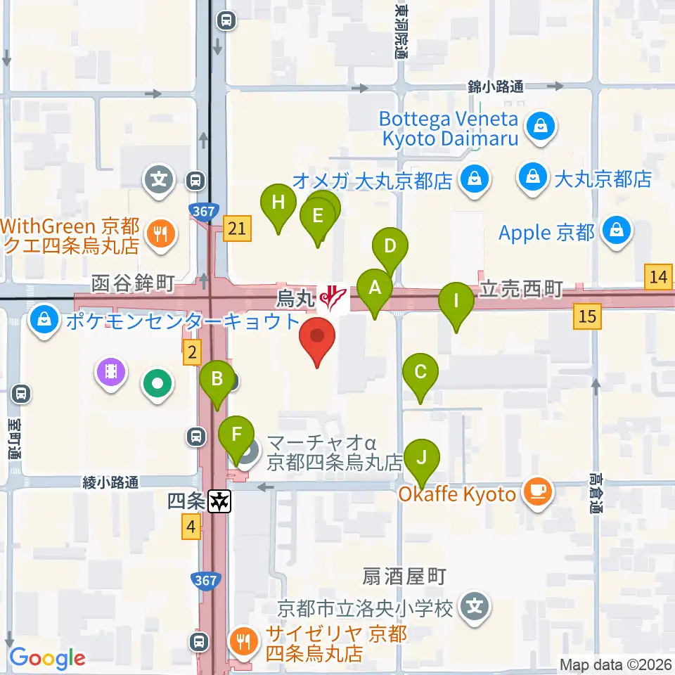 JEUGIAミュージックサロン四条周辺のカフェ一覧地図