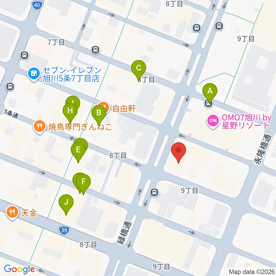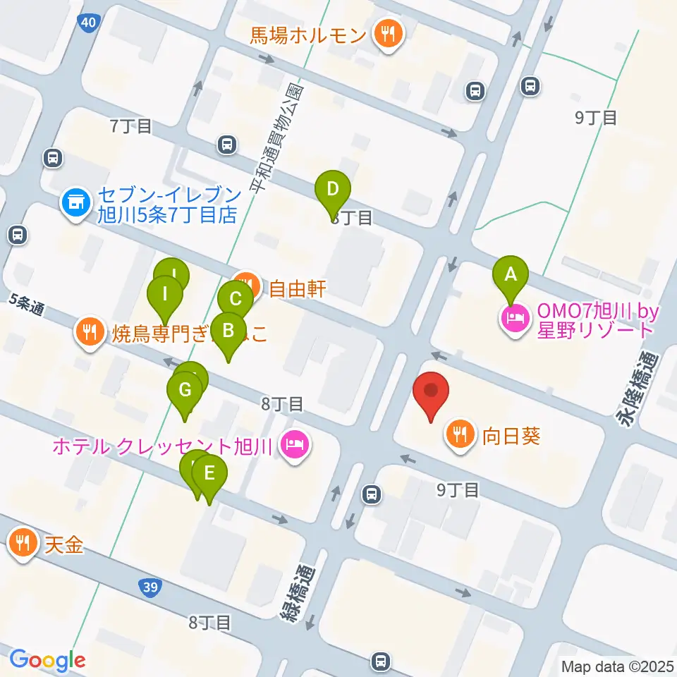 カワイ旭川ショップ周辺のカフェ一覧地図