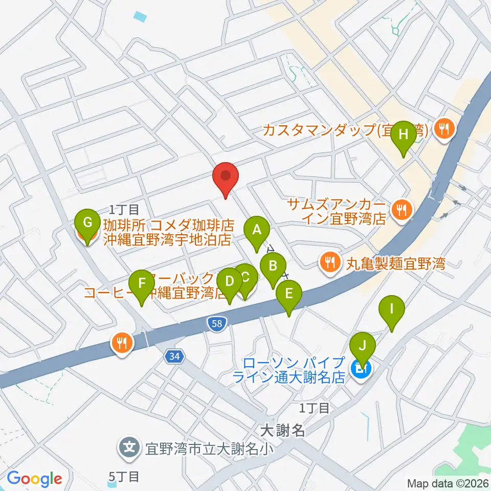 ピアノ教室にじいろミュージックスクール周辺のカフェ一覧地図