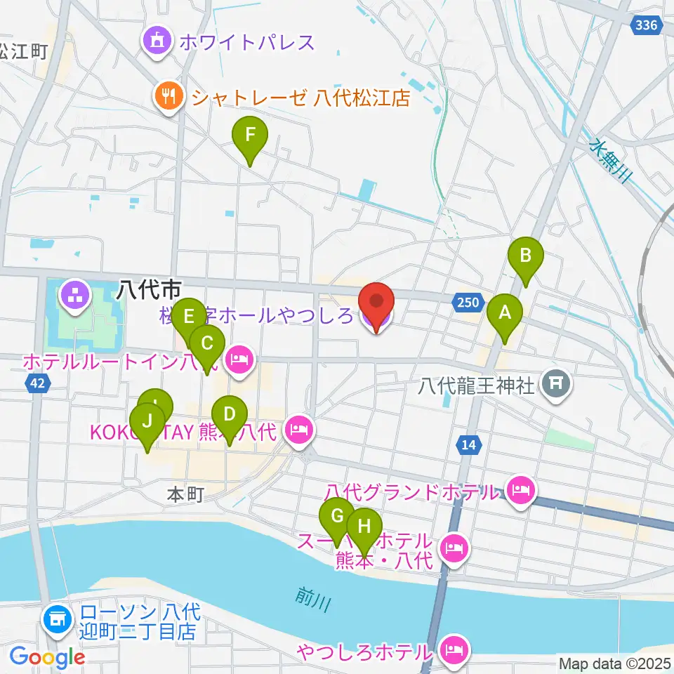 桜十字ホールやつしろ周辺のカフェ一覧地図