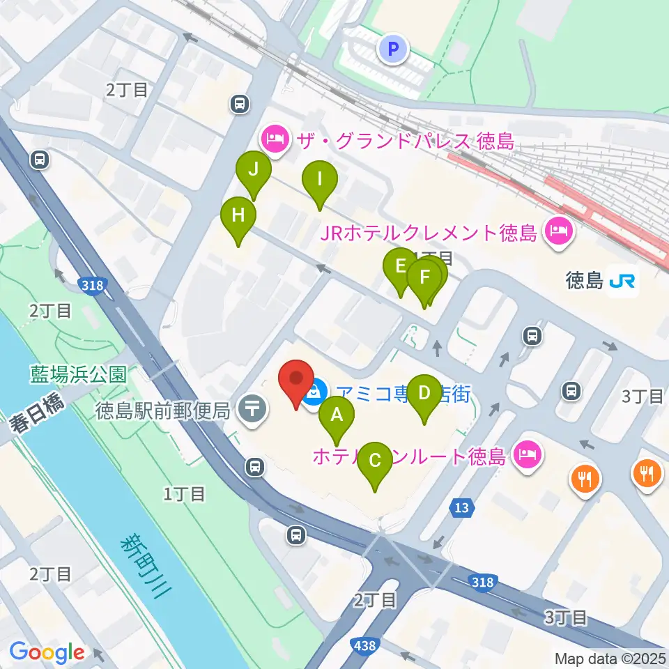 徳島市シビックセンター周辺のカフェ一覧地図