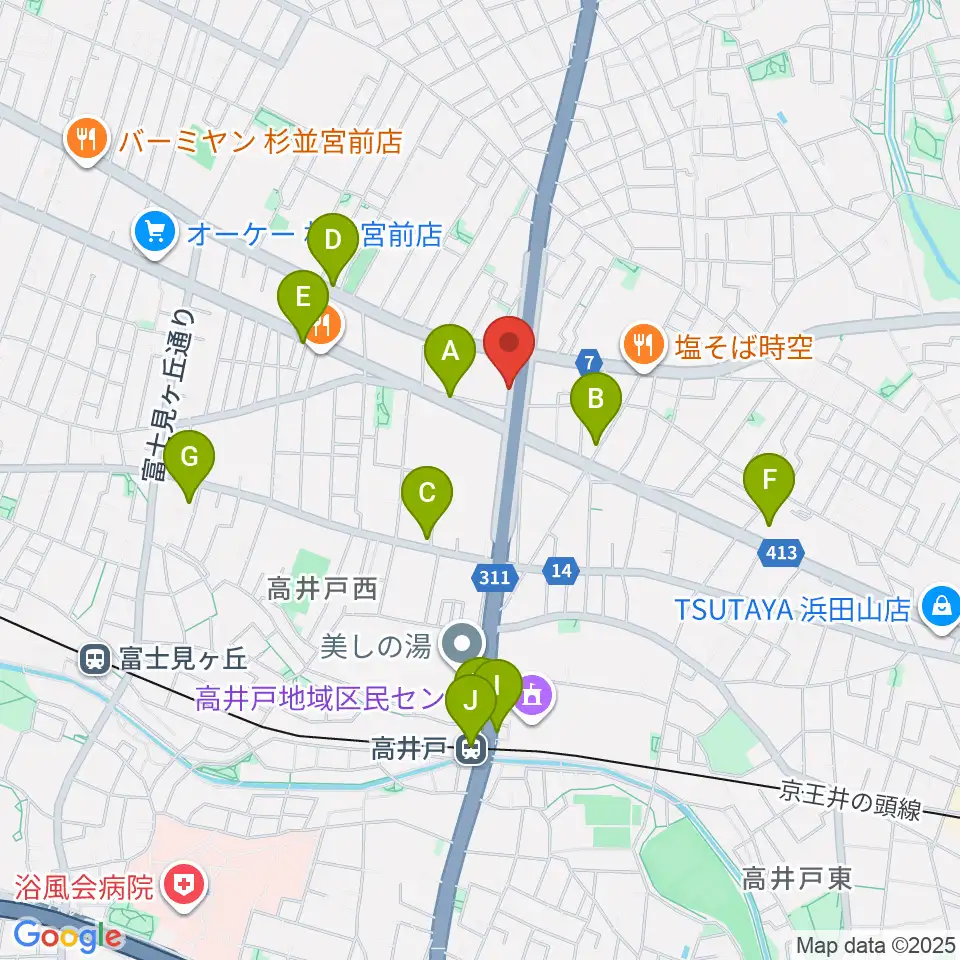 高井戸音楽スクール&スタジオ周辺のカフェ一覧地図