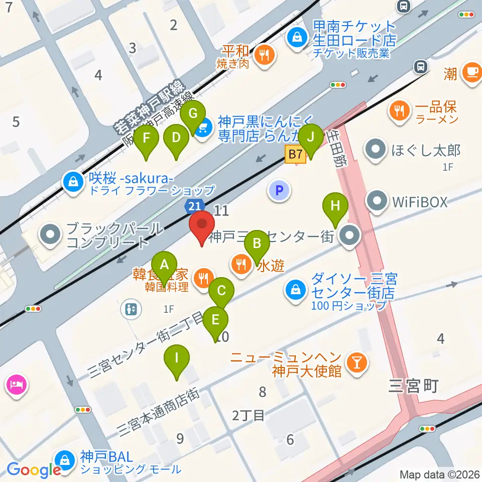 神戸三宮リードマン周辺のカフェ一覧地図