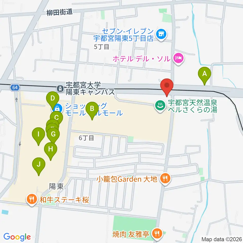 カワイ宇都宮ショップ周辺のカフェ一覧地図