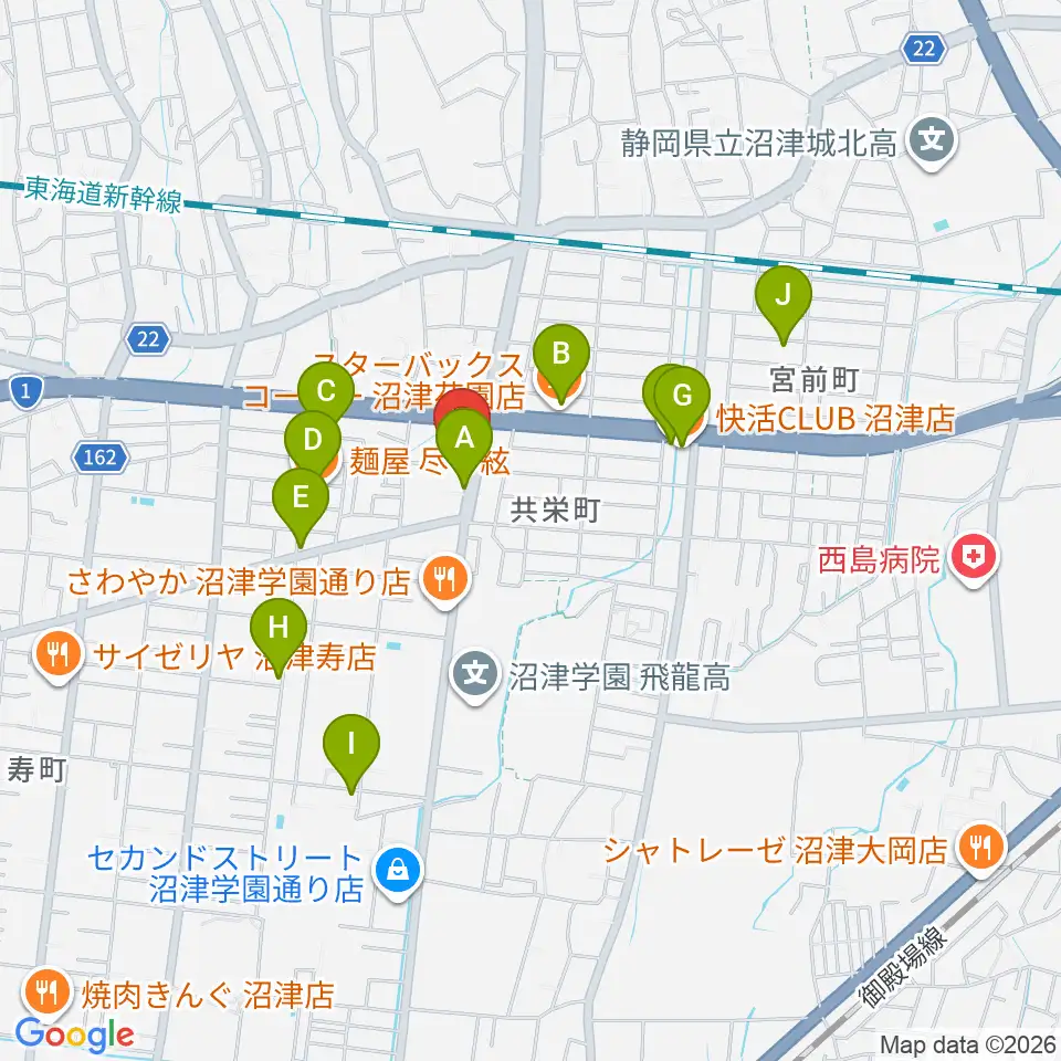 カワイ沼津ショップ周辺のカフェ一覧地図
