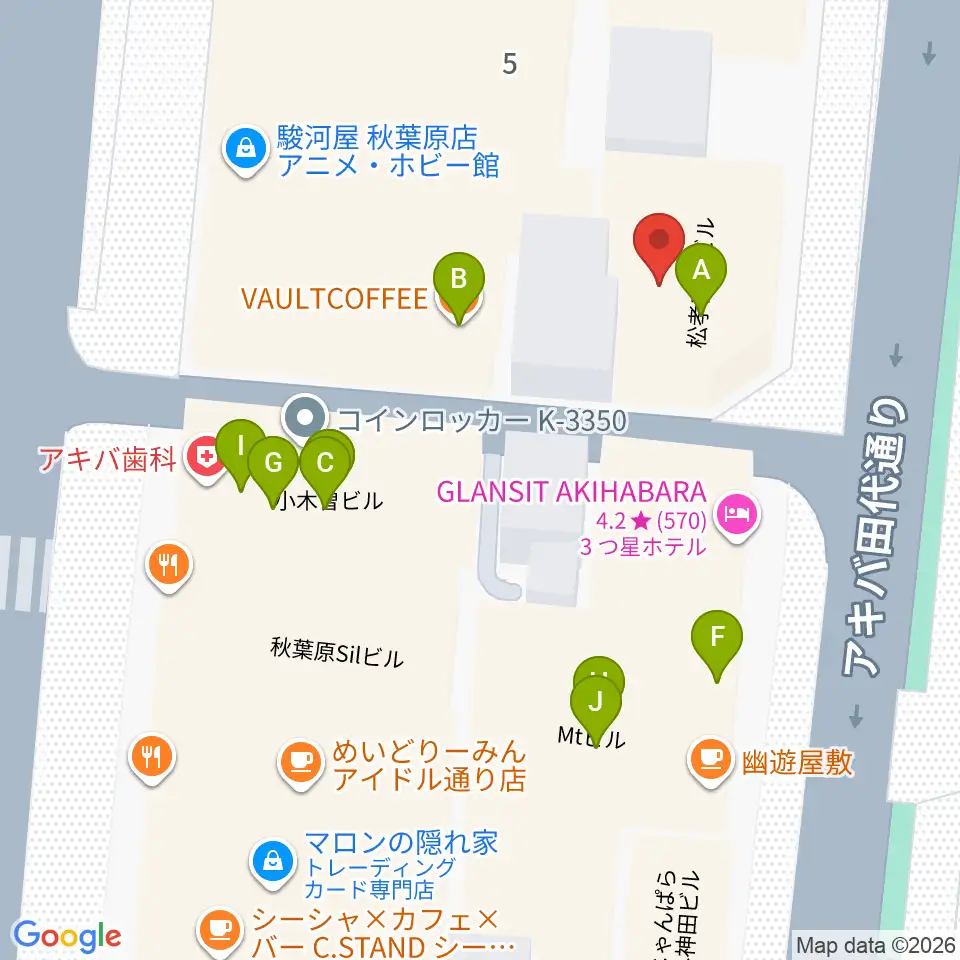 シマムラストリングス秋葉原周辺のカフェ一覧地図