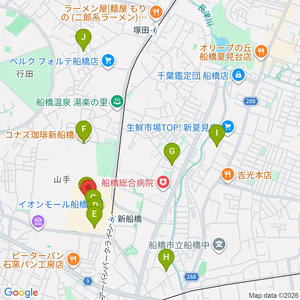 島村楽器イオンモール船橋店周辺のカフェ一覧地図
