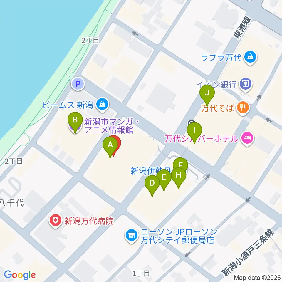 島村楽器 新潟ビルボードプレイス店 周辺のカフェ一覧地図