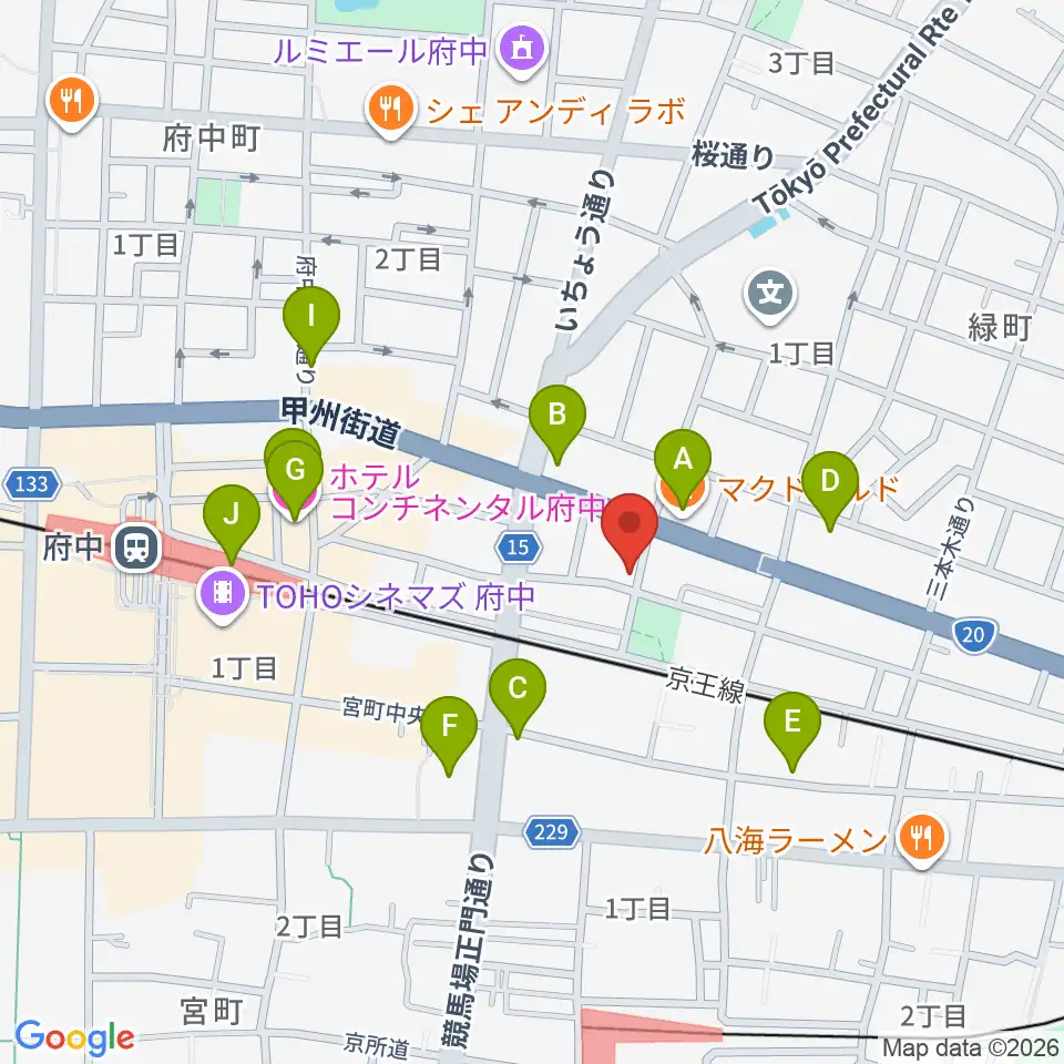 府中スタジオフライト周辺のカフェ一覧地図