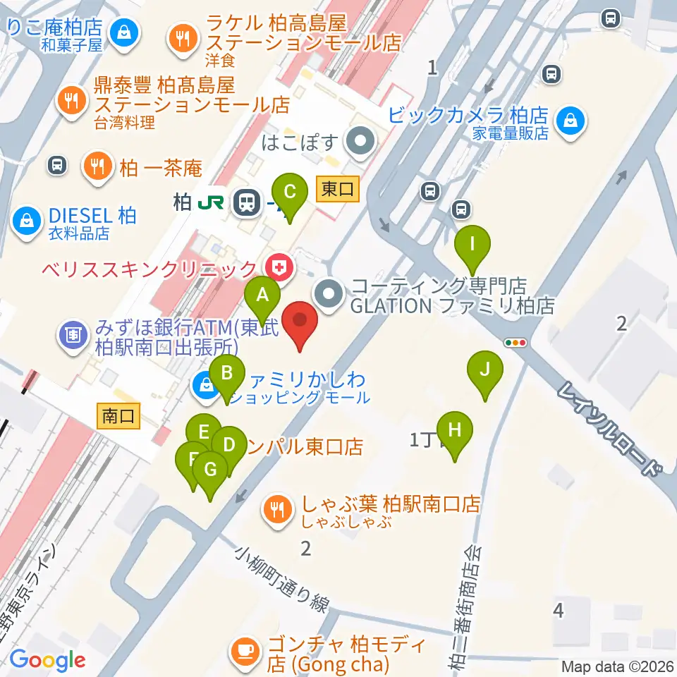 ヤマノミュージックセンター柏駅前周辺のカフェ一覧地図