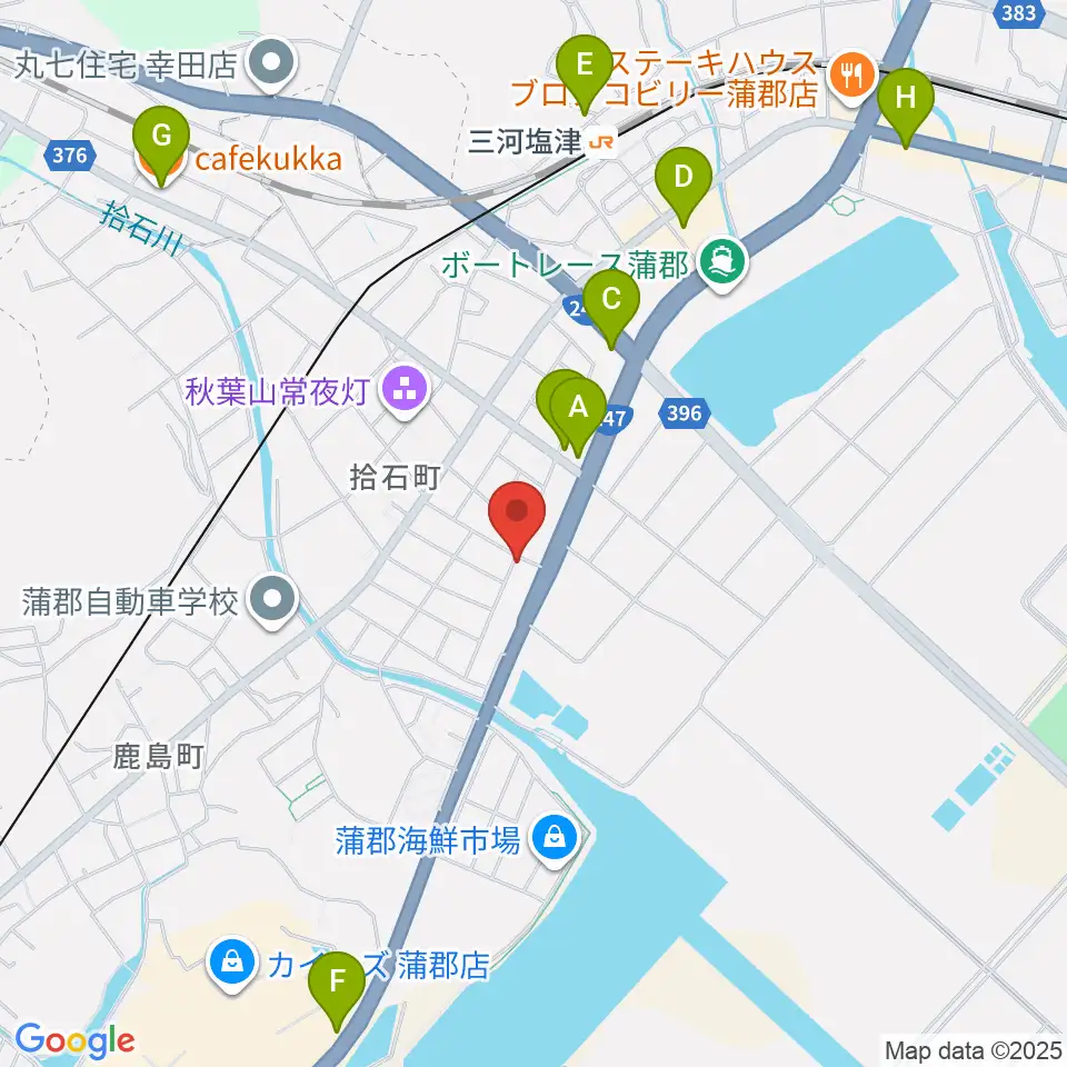 オリエント楽器 ヤマハ蒲郡中央センター周辺のカフェ一覧地図