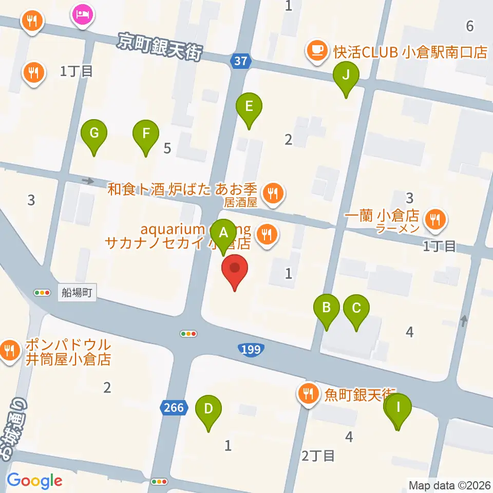 ミュージックストアナガト小倉店周辺のカフェ一覧地図