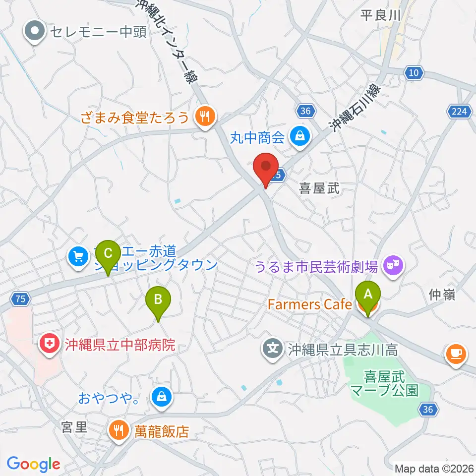 池武当新垣三線店周辺のカフェ一覧地図