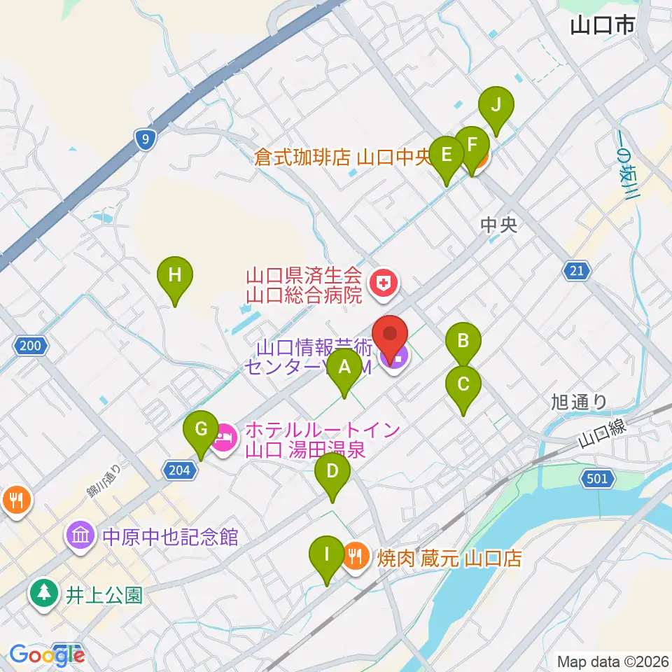 山口情報芸術センターYCAM周辺のカフェ一覧地図