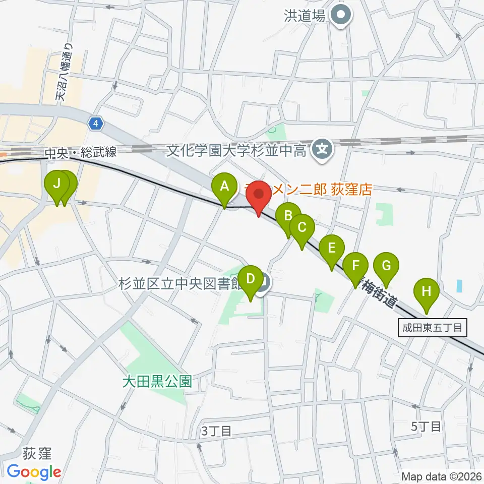 荻窪小劇場周辺のカフェ一覧地図