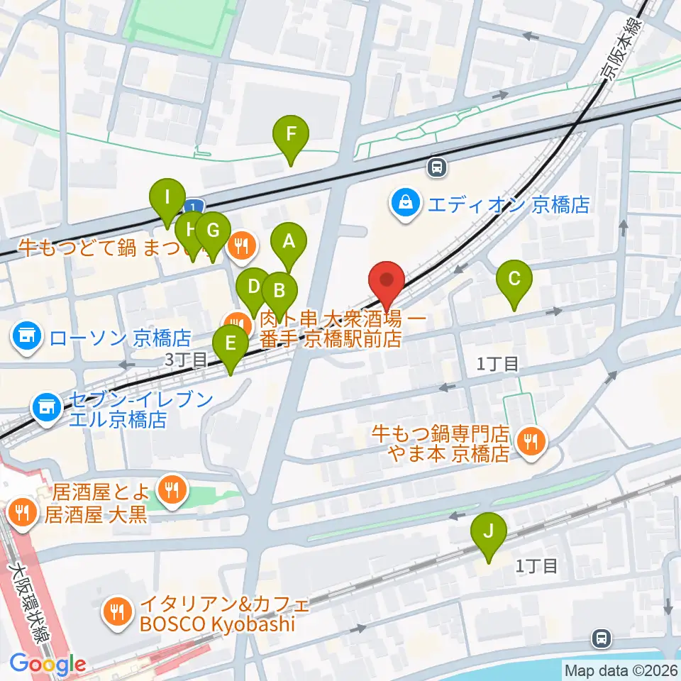ベースオントップ京橋店周辺のカフェ一覧地図