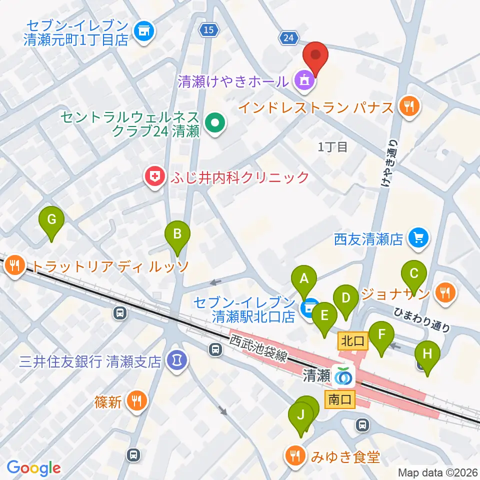 清瀬けやきホール周辺のカフェ一覧地図