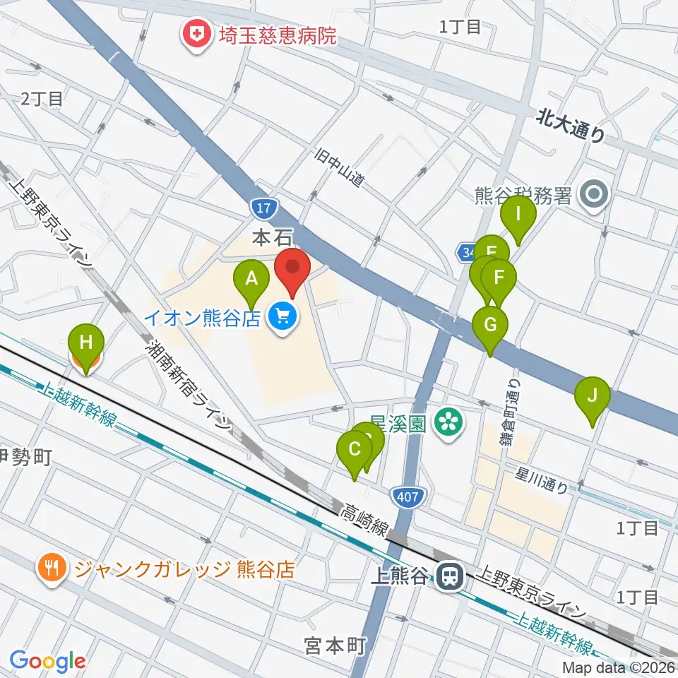 熊谷カルチャーセンター周辺のカフェ一覧地図