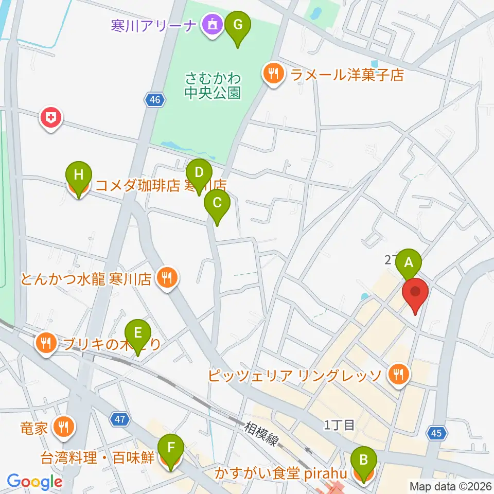 長谷川楽器店 寒川センター周辺のカフェ一覧地図