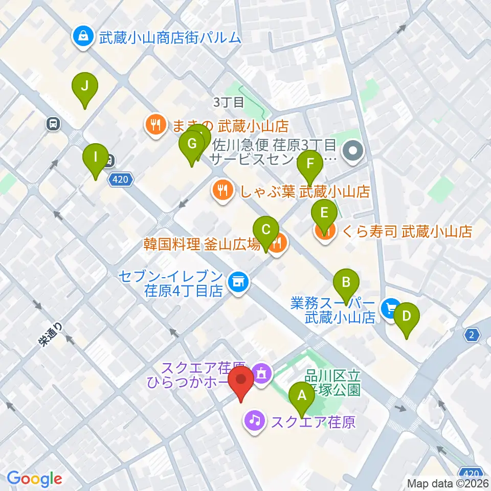 スクエア荏原 ひらつかホール周辺のカフェ一覧地図