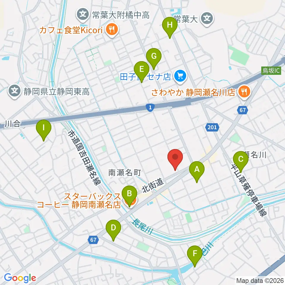 すみやグッディおとサロン瀬名周辺のカフェ一覧地図