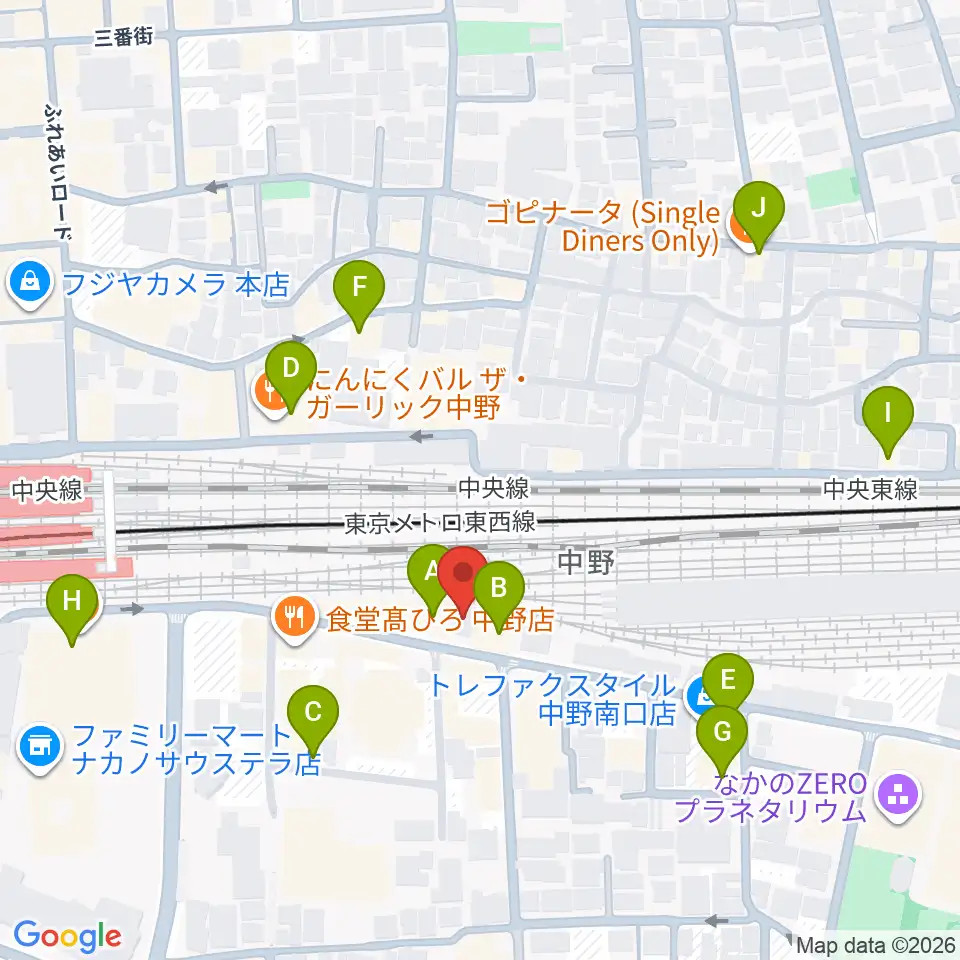 中野あくとれ周辺のカフェ一覧地図