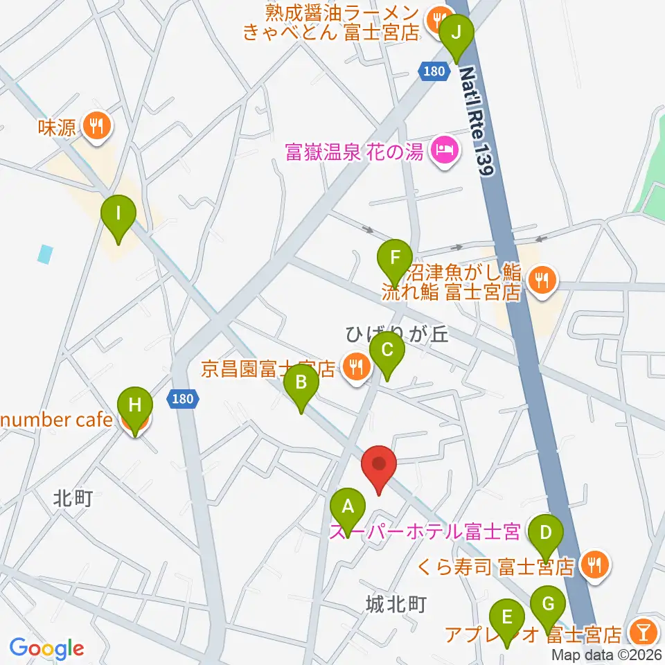 タンザワ楽器 富士宮音楽館周辺のカフェ一覧地図