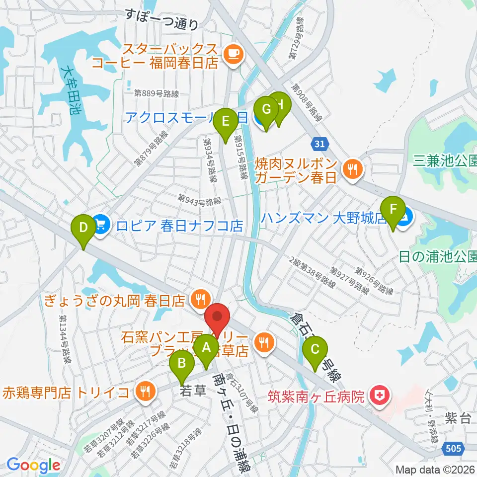 フカノ楽器店 大野城南ピアノ教室周辺のカフェ一覧地図
