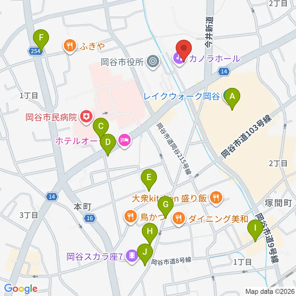 カノラホール 岡谷市文化会館周辺のカフェ一覧地図