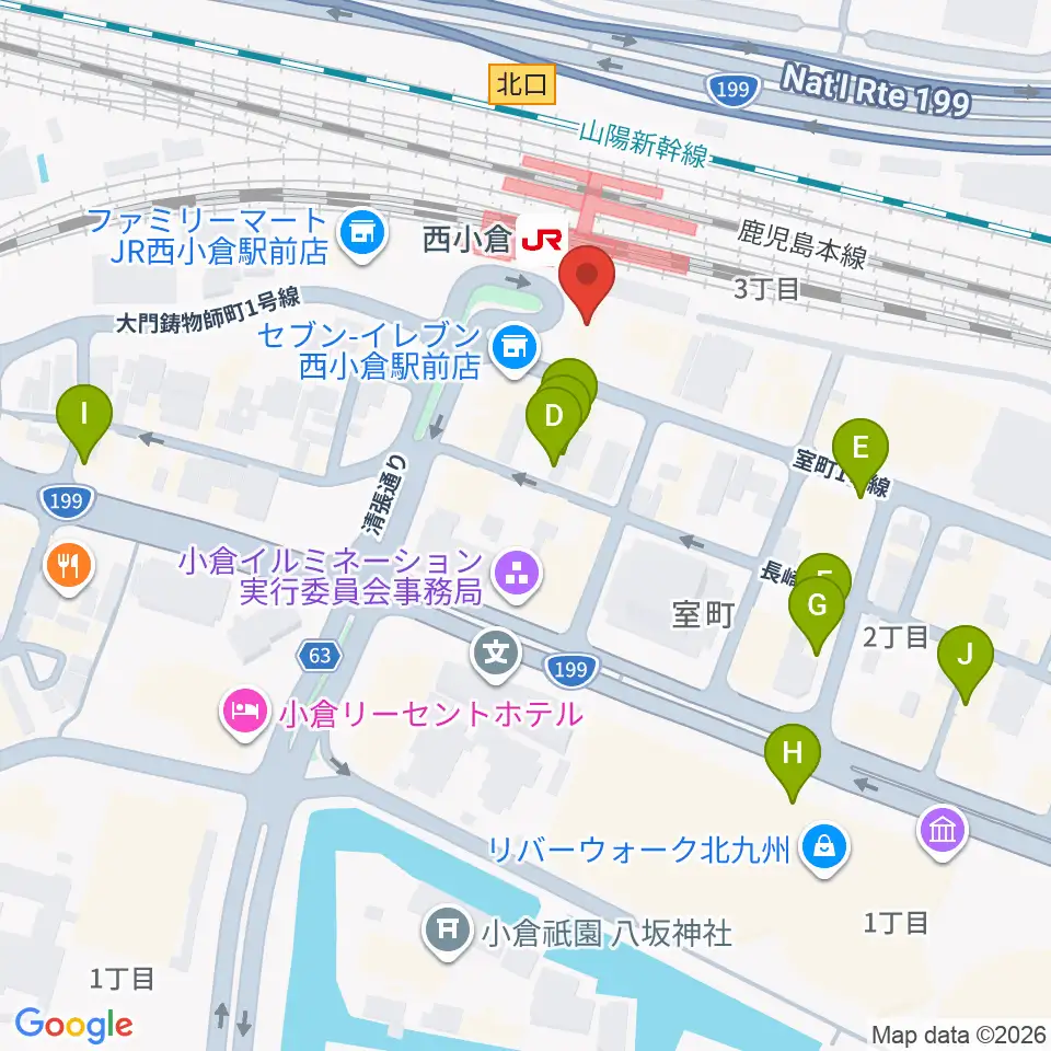 小倉 LIVE SPOT WOW!周辺のカフェ一覧地図