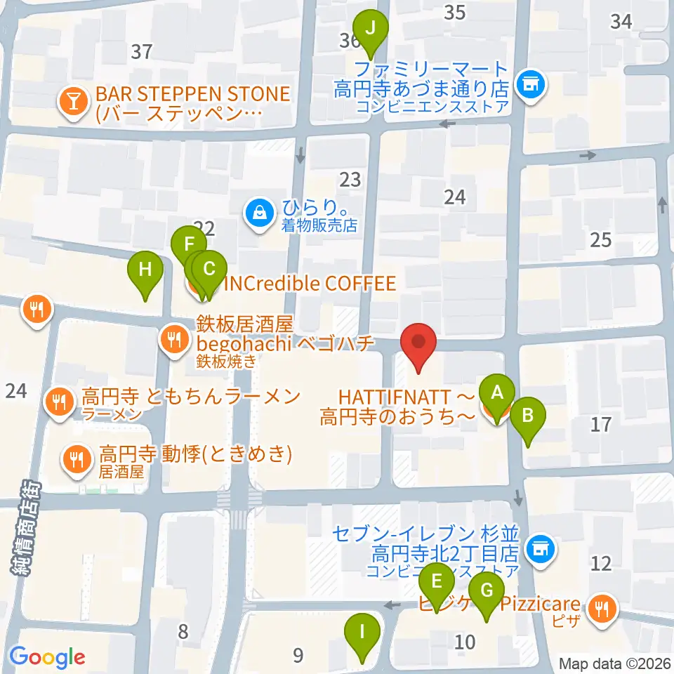 高円寺スタジオ・コヤーマ周辺のカフェ一覧地図